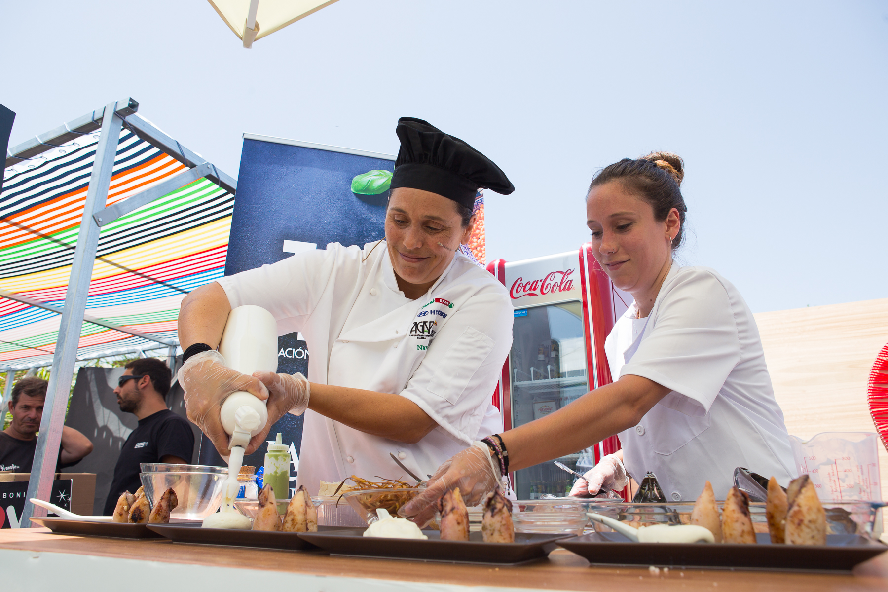 Desde las 11:00 de la mañana la zona Gastro & Moda se llenó de visitantes que se acercaron a los stands de La Palma Artesanía, Yaje Joyería, Eloísa Díaz, Lepa Punca y la Fundación Isonorte. Tras la apertura del evento, realizada por Jordi Pérez Camacho (Consejero de Idustria del Cabildo Insular de La Palma y propulsor del festival), José Manuel Baltar (Consejero de Sanidad del Gobierno de Canarias) y Minerva Alonso (Consejera de Industria del Cabildo de Gran Canaria) los asistentes pudieron degustar una variedad de platos de la cocina internacional de Frida Foodtruck y La Palma Cookery, además de vino, tapas y otros productos de la isla.