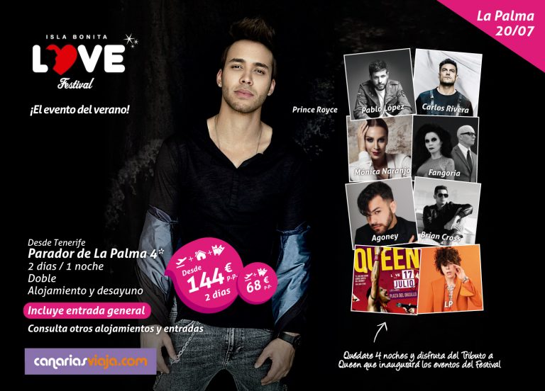 Estos paquetes aumentan las opciones que tienen los canarios de asistir a este evento social, con viajes que permitan estar en La Palma desde el primer al último día del Isla Bonita Love Festival, asistiendo a todos los actos; o viajar el mismo día del macroconcierto del 20 de julio que reunirá a un gran elenco de artistas nacionales o internacionales.